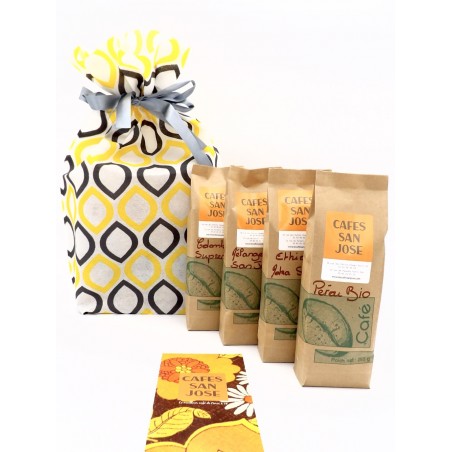 1kg de cafés grands crus en 4 paquets de 250gr. Ethiopie Moka, Colombie Supremo, Pérou bio et notre mélange San José.